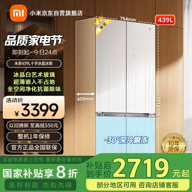 米家超薄冰箱BCD-439WGBI:大容量、低噪音,20%国家补贴后仅3399元的高端性价比之选
