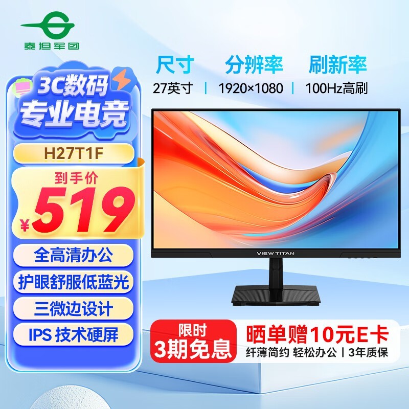 泰坦军团H27T1F显示器京东特惠仅438元