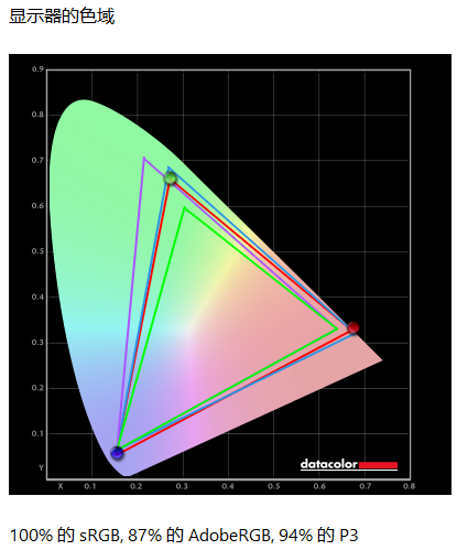 首先是色域测试,根据SpyderXElite软件的测试结果显示,优派VX27G58-2K显示器sRGB色域的覆盖度为100%,AdobeRGB色域的覆盖度为87%,P3色域的覆盖度为94%,表现完全符合官方宣传水平。