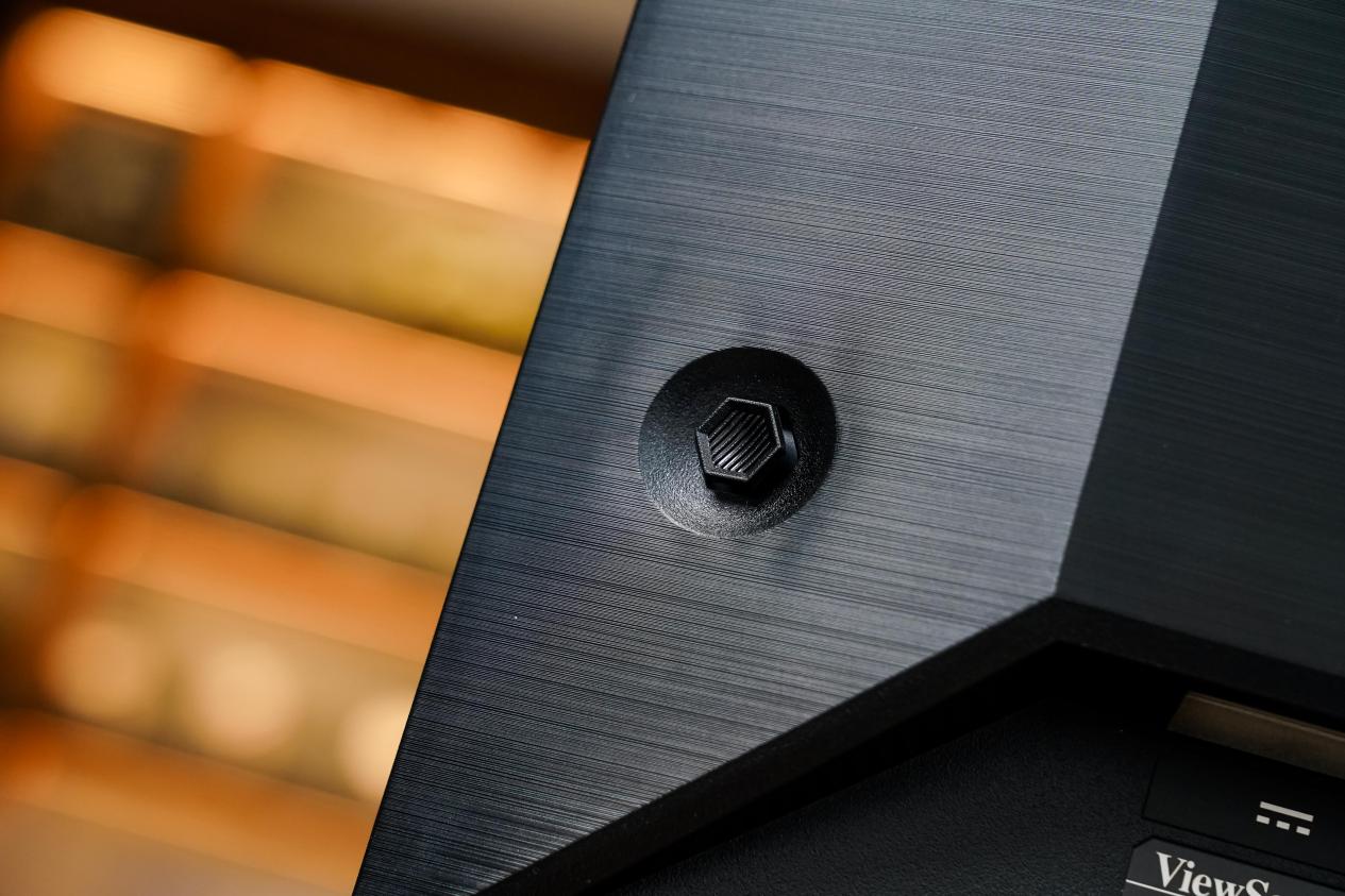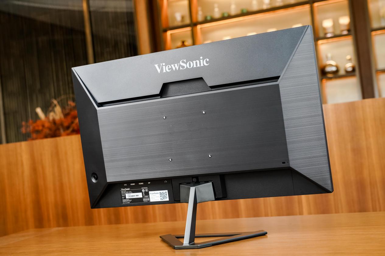 来到背面,一眼就能看到ViewSonic的标识,整体外观偏商务,除了四周角落的切割设计保留了一点电竞韵味,普通用户基本无法从外观分辨出它是一台电竞显示器。