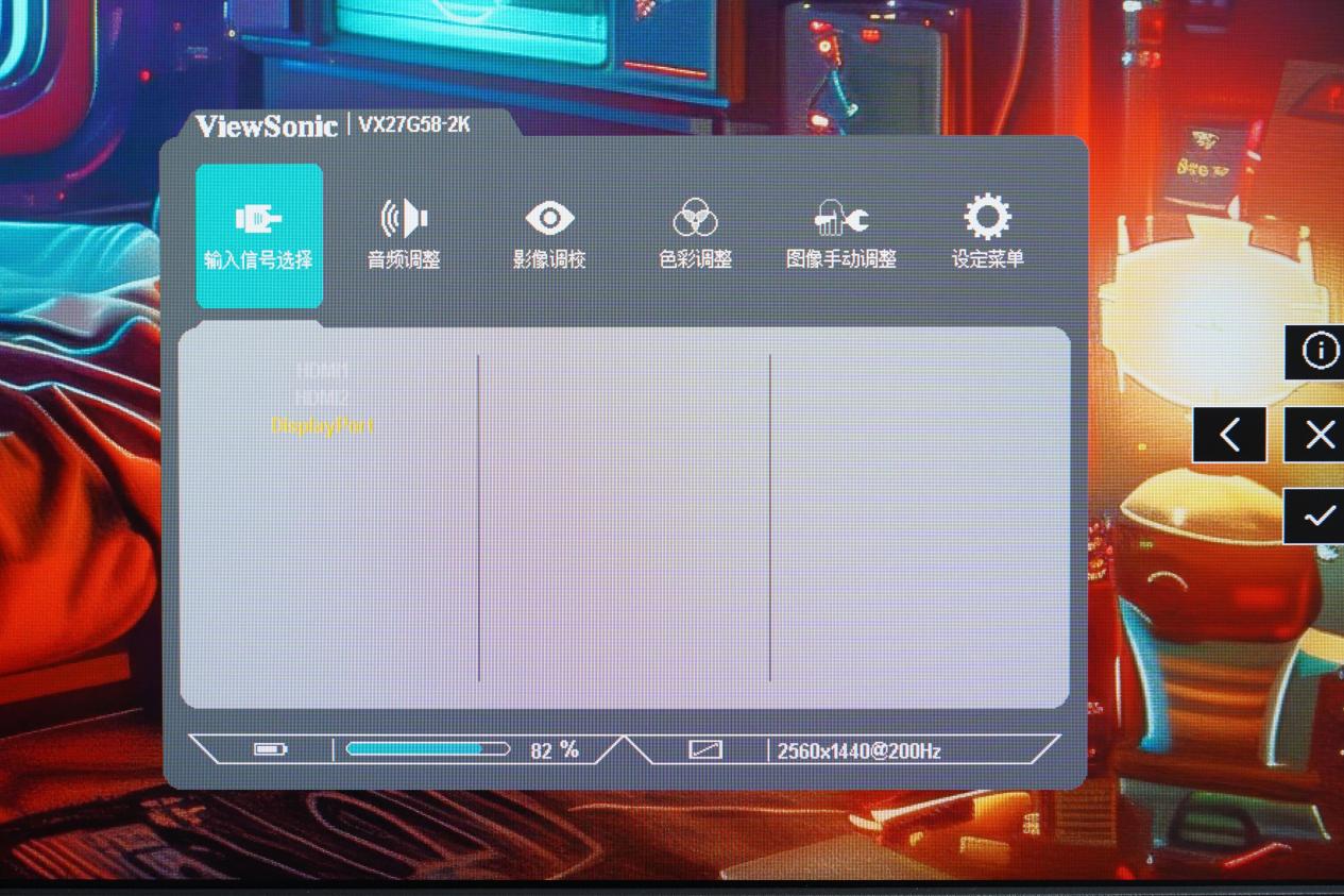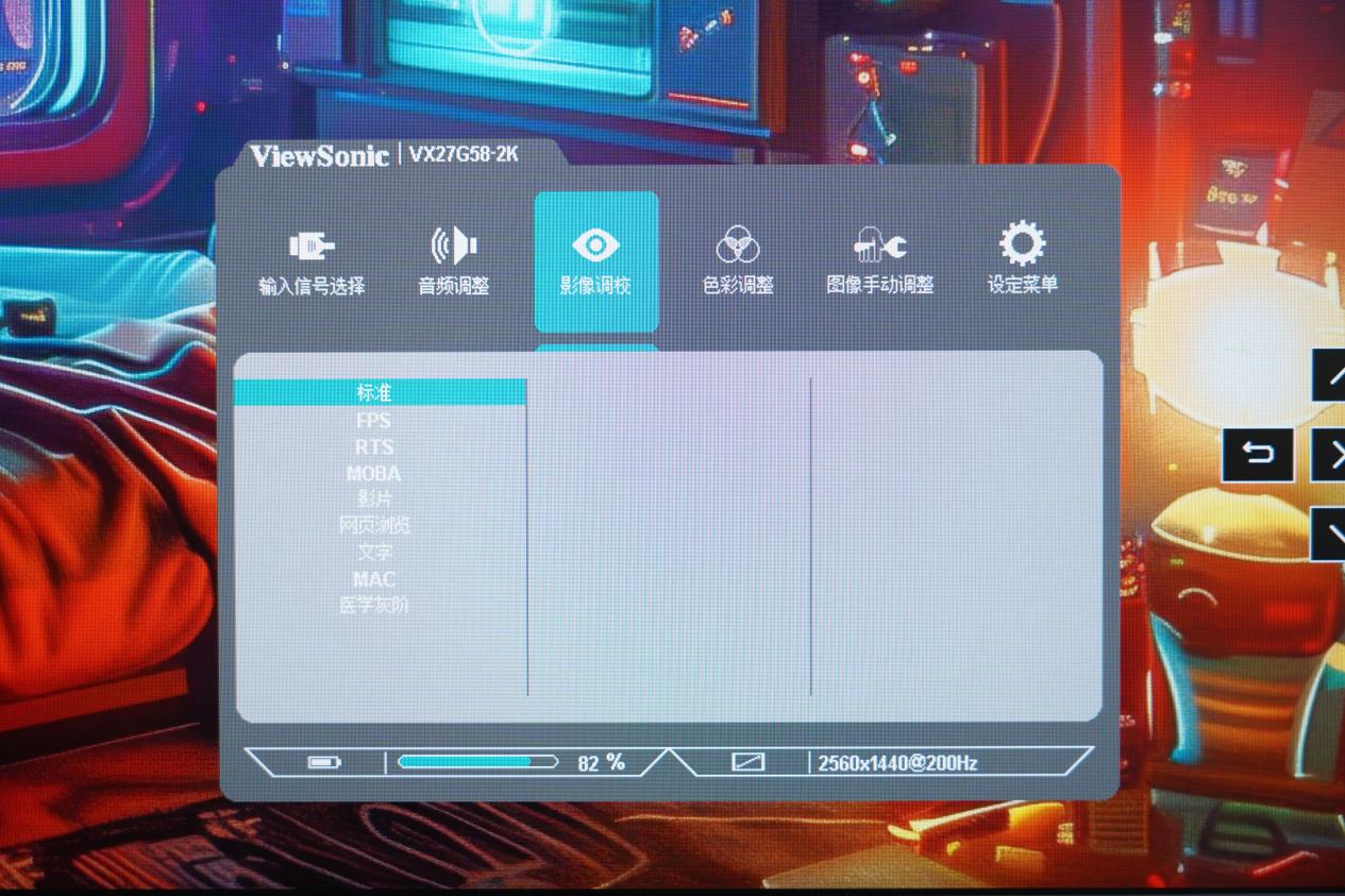 优派VX27G58-2K的OSD菜单相对比较简单易上手,用户可以通过菜单自如设置画面设置,优派也准备了不少预设调校供用户选择。值得一提的是,OSD菜单左下角还做了耗电提示,不同的画面及亮度设置会导致显示器的功耗不同,从环保的角度来看具有一定的意义。