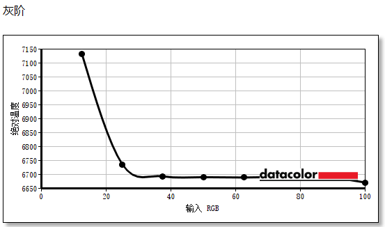 灰阶方面,显示器在30%-100%的亮度下表现十分稳定,色温维持在6650-6700K之间,比较贴近标准色温。