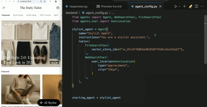 在今天凌晨 1 点的现场直播中,演示人员也向我们展示了一个「个人造型师」 Agent 的应用案例,用来展示各种新工具的能耐。