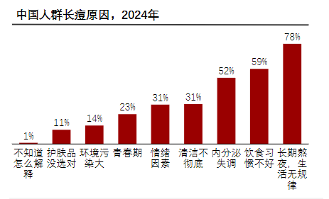 长期熬夜、饮食失衡等现代生活方式,已将痤疮从青春期的烦恼转变为各年龄层的肌肤问题。数据显示,中国人群中,78%的长痘主因是熬夜与生活不规律,影响皮肤代谢,促使皮脂过度分泌而引发痤疮。超过95%的中国人有不同程度的痤疮经历,其中3%-7%的患者会留下痘印。在一二线城市,16-29岁群体的痤疮患病率高达36%,过半患者因此感到自卑,影响社交。