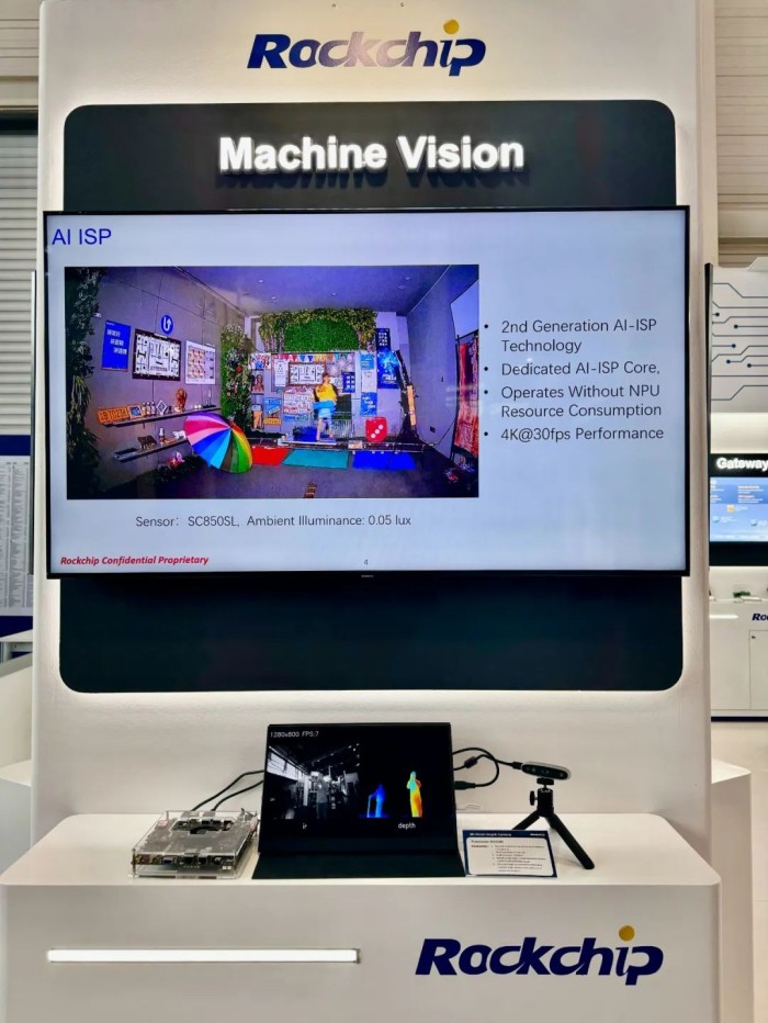 此次,瑞芯微展出了基于自研芯片平台的系列AI技术,涵盖机器视觉、大语言模型(LLM)、多模态交互等方向,为工业自动化、智能制造及设备智能化提供全栈解决方案。RK3588多路边缘计算方案用于智能视频分析检测,可支持最高6路人脸检测、24路周界及32路智能动检测,提供RockIVA算法套件,支持turnkey人脸识别、周界检测、智能动检(人车非)模型。