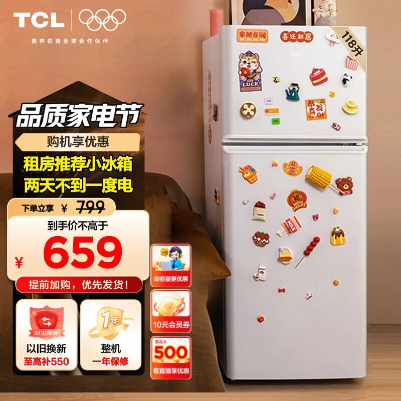 TCL BCD - 118KA9直冷双门冰箱仅需616元