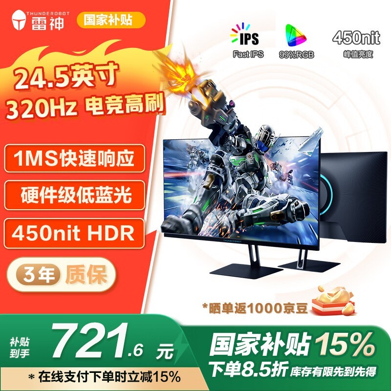 雷神CF25F300黑武士显示器京东特惠价721元