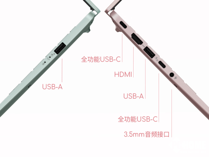 新款a豆14 Air悦享版采用了轻薄的设计以及时尚的配色,提供了瑰蜜粉金、蜜桃甜心和鼠尾草青三色可选,薄约15.9mm,重量约为1.39kg。机身采用了金属材质,运用了高精密混成喷砂技术,手感细腻。接口方面,该笔记本提供了2个全功能USB-C接口、2个USB-A接口、1个HDMI接口、以及3.5mm音频插孔等。