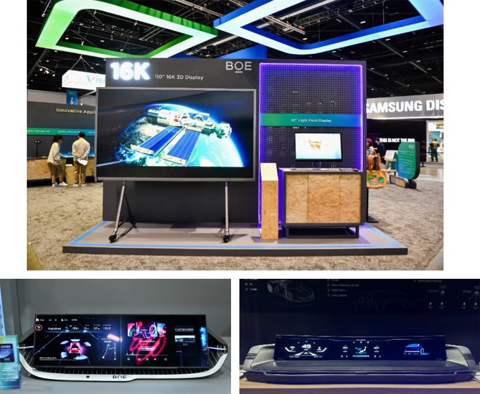与此同时,京东方在2021年底推出中国半导体显示领域首个技术品牌,以ADS Pro、f-OLED、α-MLED三大技术品牌为抓手持续推动技术创新。2024年,京东方110英寸16K裸眼3D显示屏、31.6英寸Slidable Display 滑卷屏以及搭载超大尺寸氧化物与玻璃基MLED背光两大核心技术的车载超大尺寸Oxide智能座舱屏幕等产品不仅赢得了业界的广泛赞誉,更是将CES、SID、IFA等全球颇具产业影响力的奖项纷纷收入囊中。