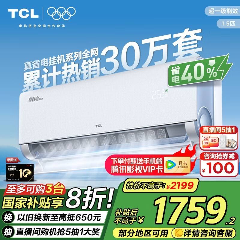 TCL真省电Pro 1.5匹空调原价2189现1452.16