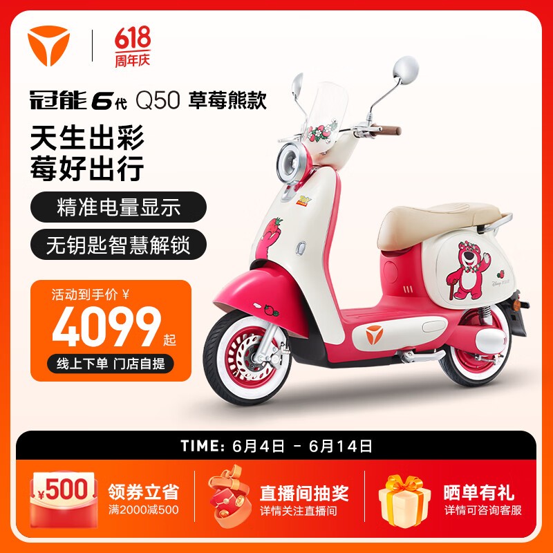 雅迪冠能6代Q50-M草莓熊联名款电动车促销信息