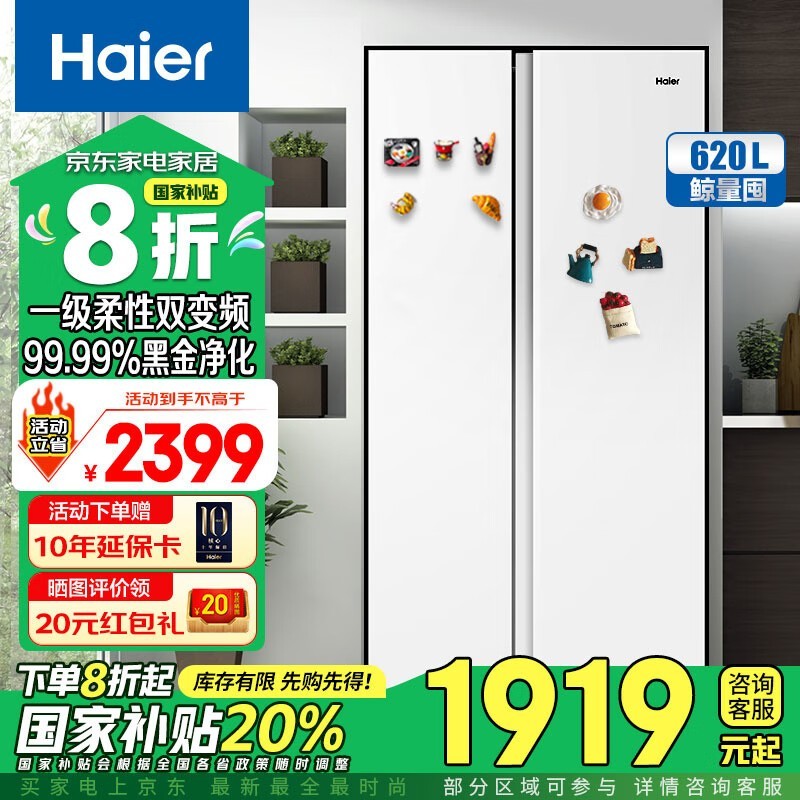 海尔BCD-620WGHSSEDWV对开门冰箱620L大容量双变频节能静音