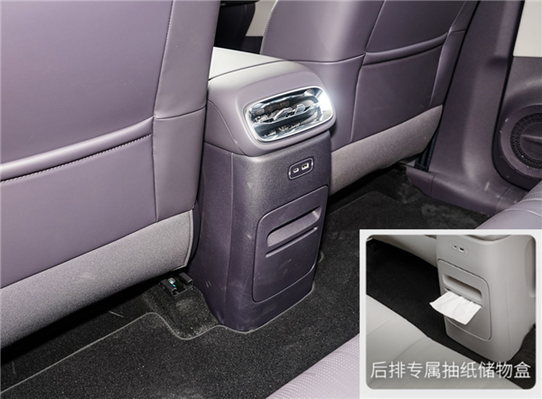 这种小设计中控后面也有,在储物盒这里多了一道开口,是让你在里头放抽纸用的。
