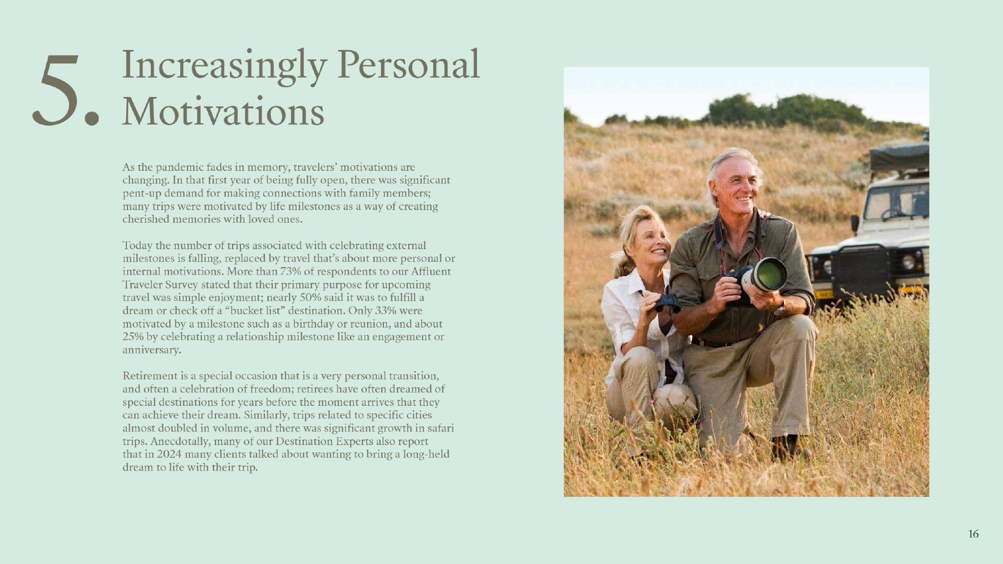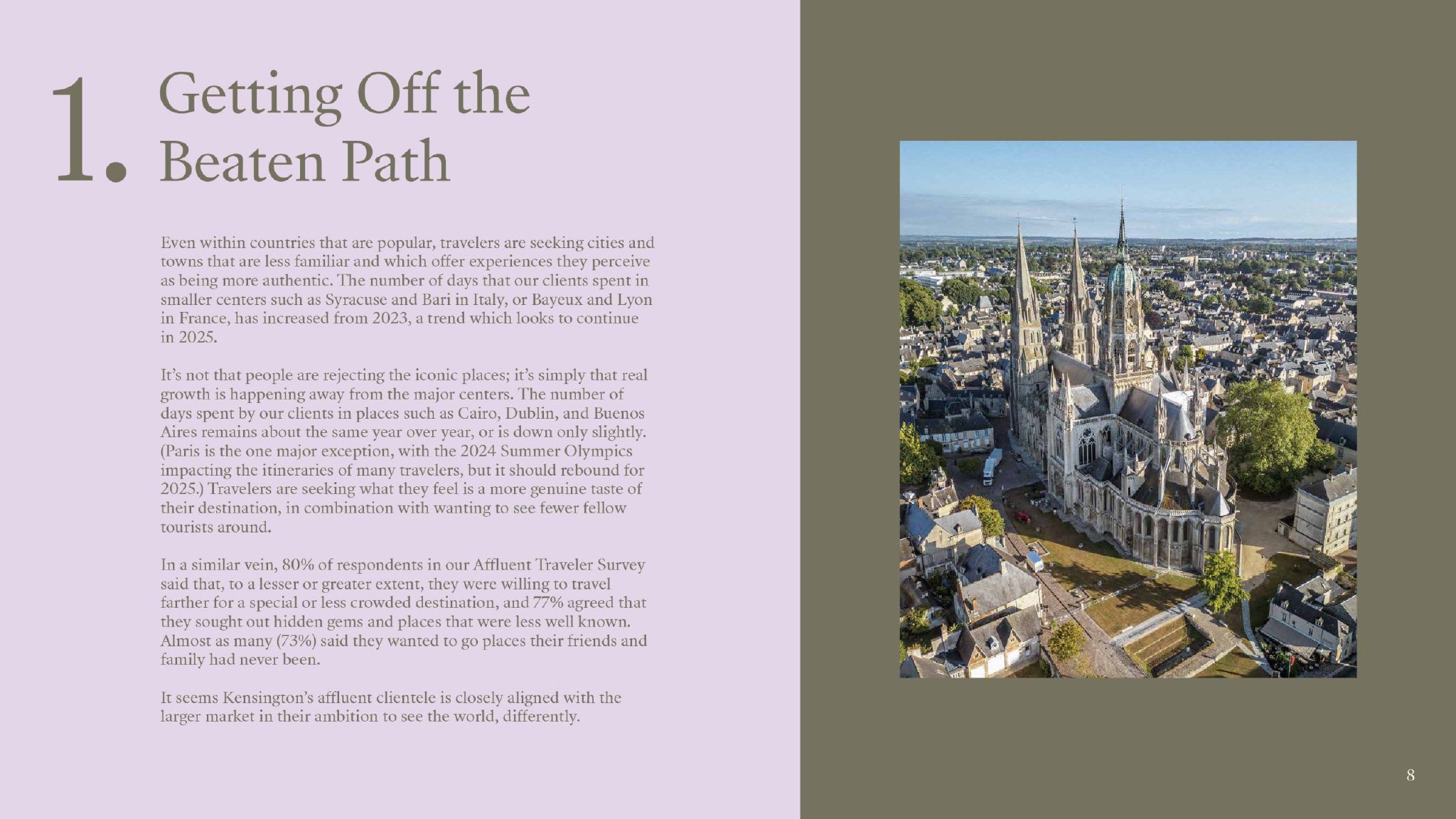 报告分享了Kensington Tours对未来一年的旅游圣地和体验的预测,这些圣地和体验将抓住旅行者的想象力。每一个都是基于硬数据和对2024年看到的趋势的深刻分析。从最受欢迎的目的地到新兴的旅游偏好,报告提供了一个详细的概述,突出了行业的动态特性。 报告的目标是帮助读者发现见解,在未来一年中塑造旅游产品,继续共同激励客户,为他们创造难忘的旅行体验。