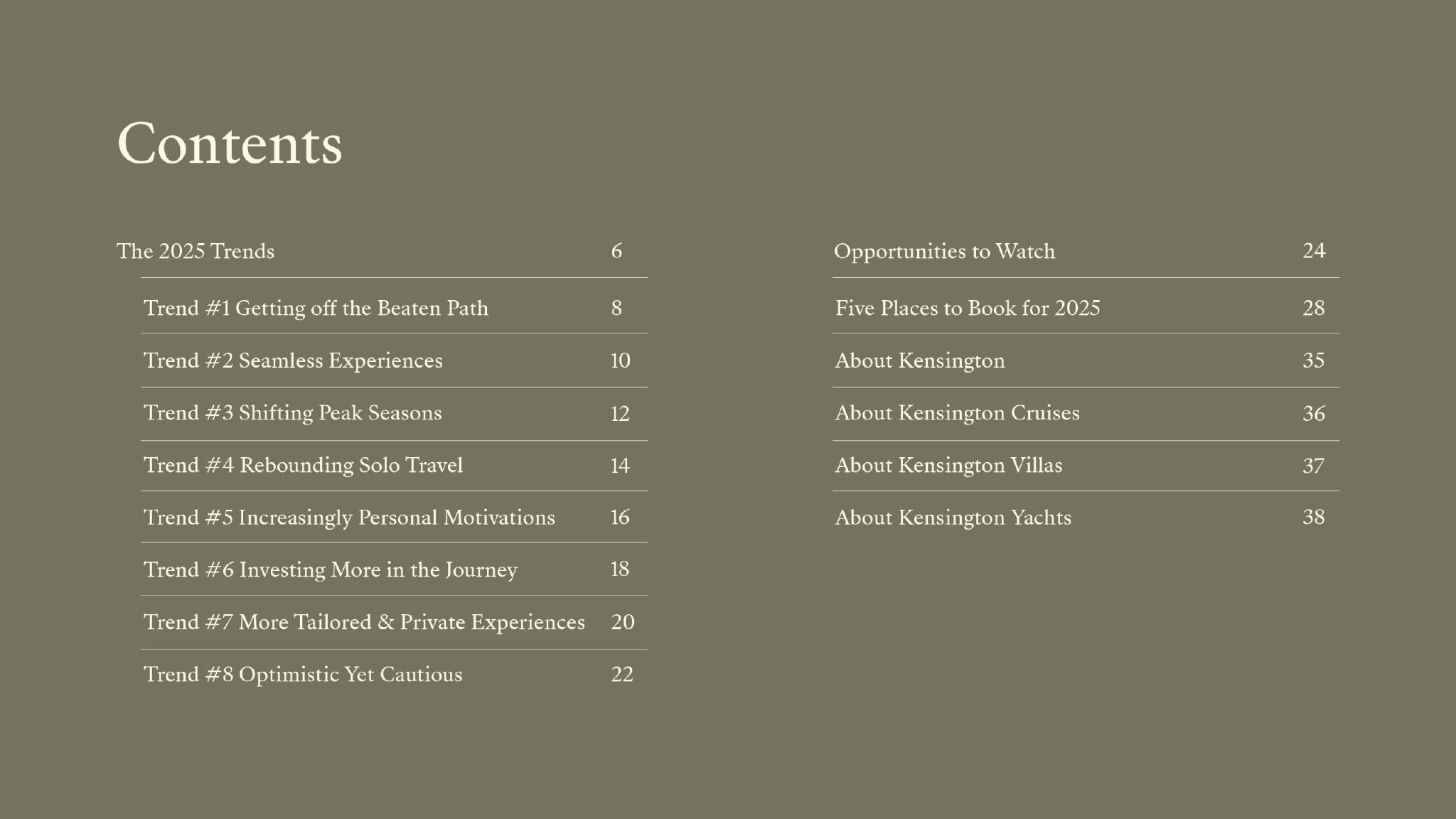 该报告也恰逢肯辛顿最近的品牌重塑,包括肯辛顿之旅、肯辛顿别墅、肯辛顿航空和肯辛顿邮轮。在过去的一年里,Kensington Tours还重新启动了姊妹公司,肯辛顿游艇,提供完整的私人租赁体验,将完美的船只与礼宾服务相结合。