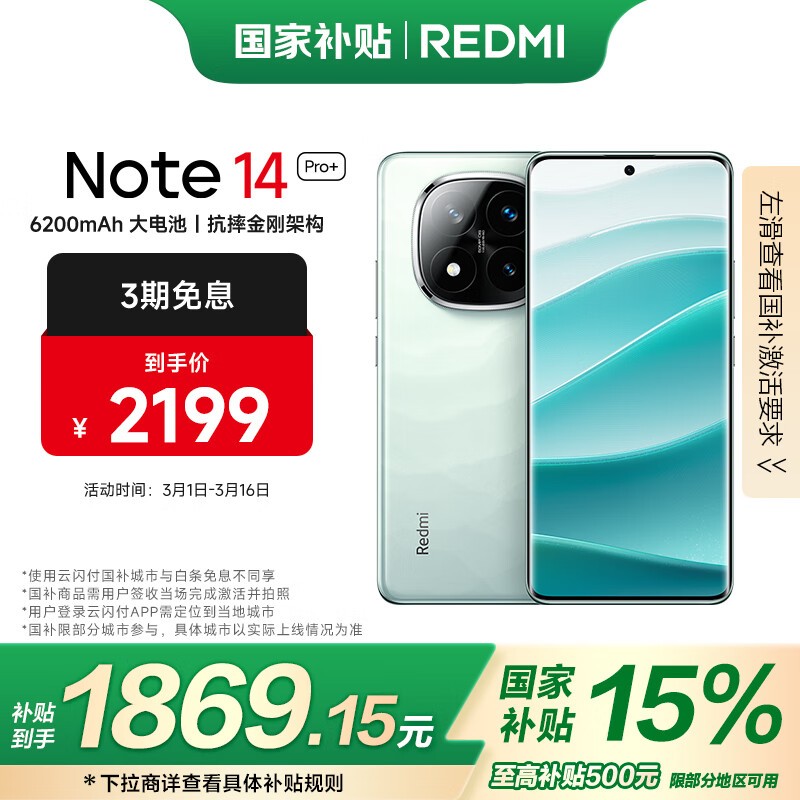 红米Note 14 Pro+ 5G手机第三代骁龙7S芯片京东特惠1775元