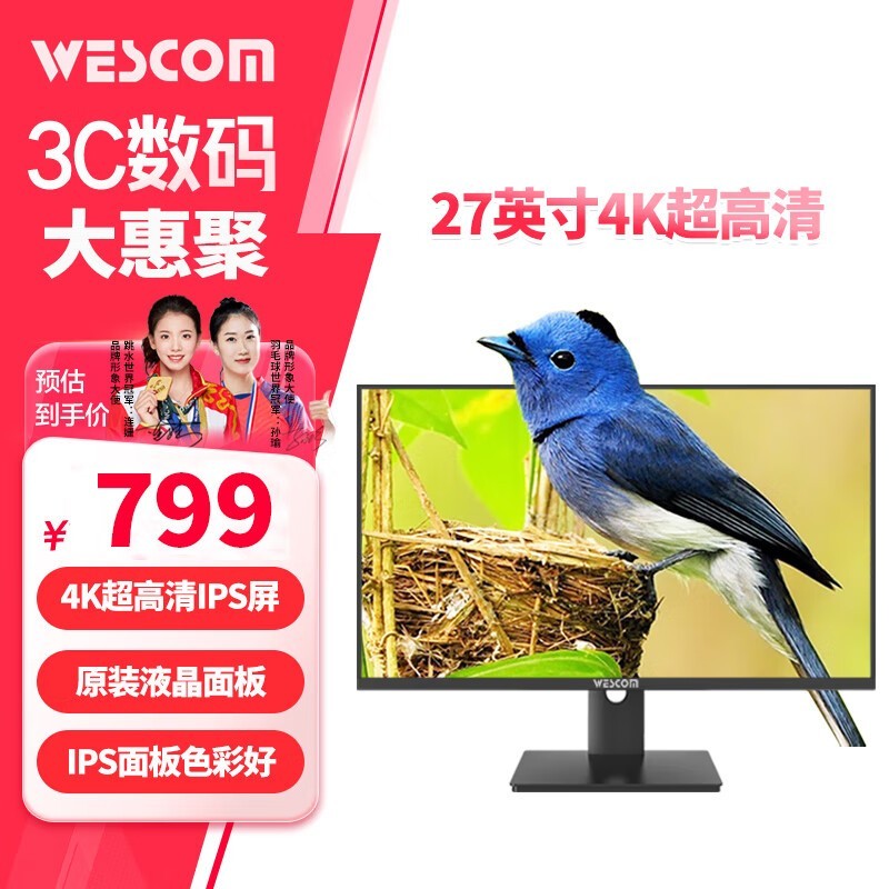 wescom C2786IUY 27英寸4K IPS显示器优惠促销