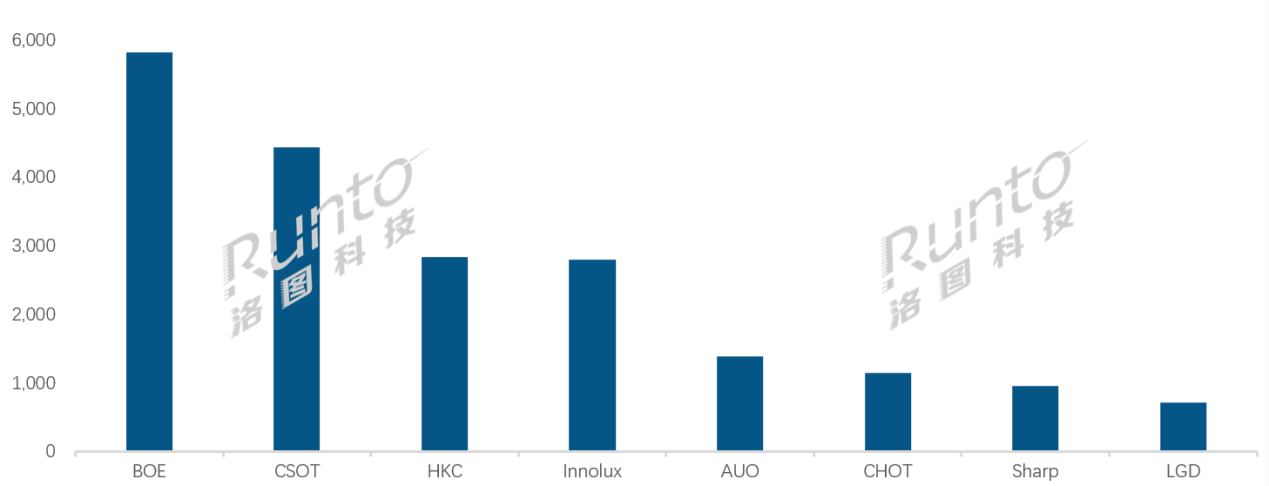 而第三的惠科是前三中唯一负增长的品牌,不仅同比下降7个百分点,且环比也有一成左右的负增长。如此相对萎靡的状态,也缩近了和身后排名第四群创的距离。可以预见,惠科和群创在今年全球面板市场的“第三之争”将会更加胶着和激烈化。