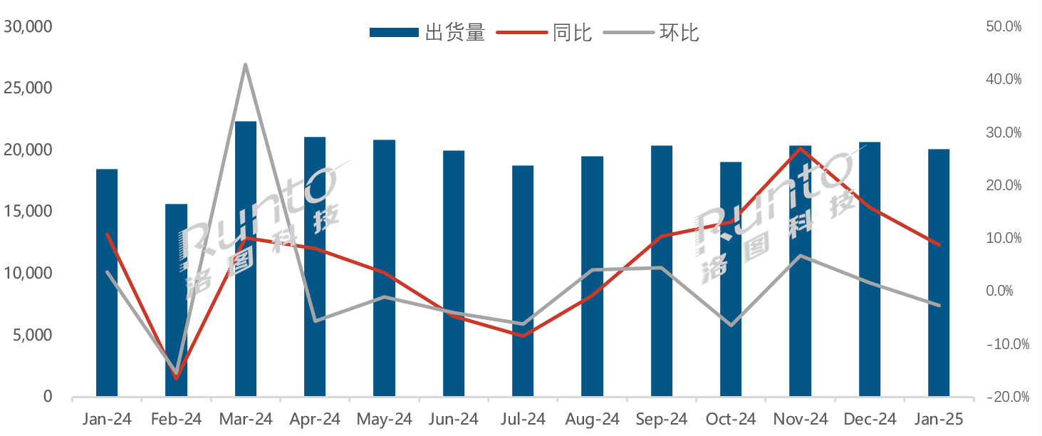 2025年1月,全球大尺寸液晶电视面板市场延续了增长态势,但增速有所放缓。据洛图科技最新数据报告显示:1月全球液晶电视面板出货量为20.1M片,同比增长8.8%,环比下降2.7%;出货面积为15.1M平方米,同比增长10.8%,环比微降0.7%。这是液晶电视面板出货规模连续第五个月实现同比增长。