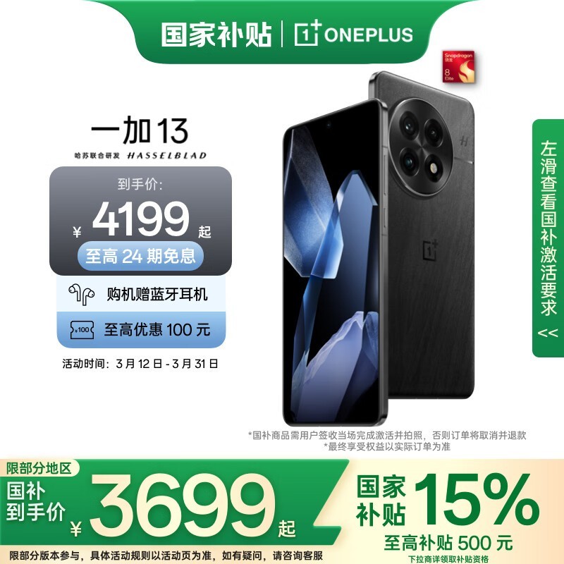一加 OnePlus 13 5G手机促销:到手价4599元享旗舰体验