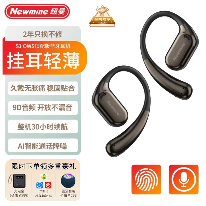 纽曼S1挂耳式蓝牙耳机触控操作轻巧舒适运动型耳机