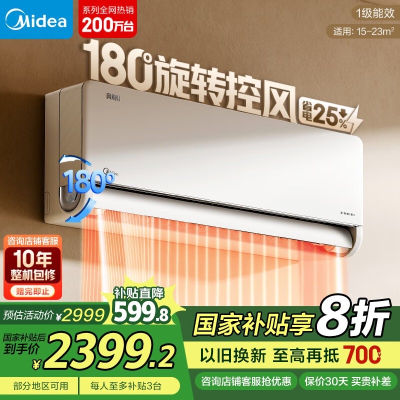 美的风尊二代1匹空调优惠,到手价1739元