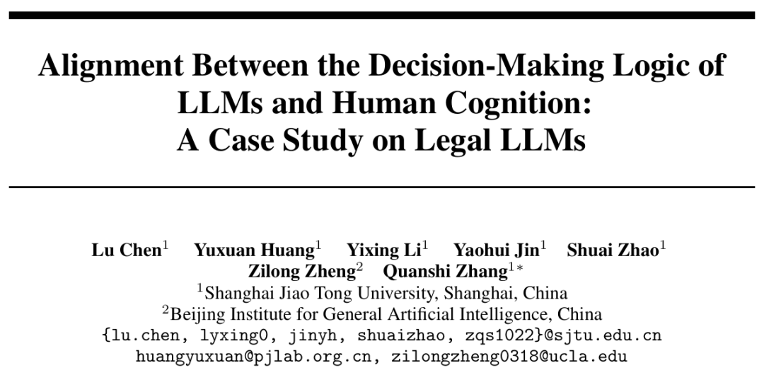 [3] Lu Chen, Yuxuan Huang, Yixing Li, Yaohui Jin, Shuai Zhao, Zilong Zheng, Quanshi Zhang, "Alignment Between the Decision-Making Logic of LLMs and Human Cognition: A Case Study on Legal LLMs" in arXiv:2410.09083, 2024.
