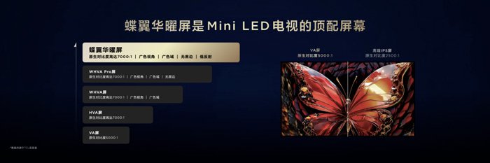 本次供屏第四代液晶电视,TCL华星充分释放了技术积淀,以蝶翼华曜屏赋能旗舰级画质表现。鉴于Mini LED电视依赖于亮度和对比度以提升画质表现,因此配备一块具备高对比度特性的VA屏幕至关重要。此次提供的蝶翼华曜屏,是TCL华星HVA最高配置的屏幕,也是当下最适合Mini LED电视的VA屏。