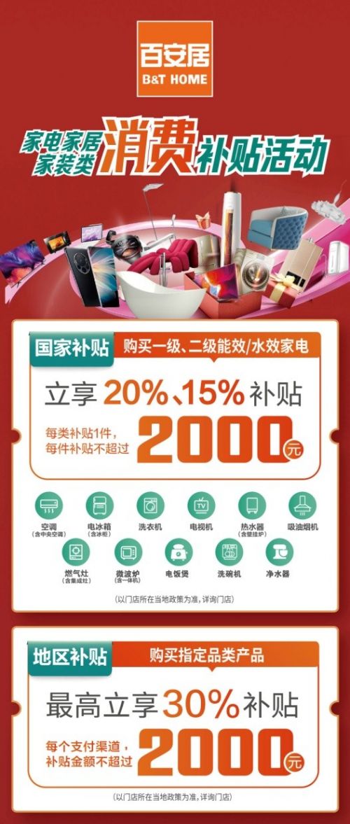 随着国家对家电家居家装行业消费补贴政策的全面实施,消费者迎来了购物黄金机遇。特别是上海地区,针对适老类家居产品的补贴力度更是前所未有,最高可达30%,这不仅有助于促进家居消费,也推动了家居消费向高品质、绿色环保、适老宜居方向迈进。在这一波政策的强力推动下,百安居加码惠民福利,为消费者带来更多的实惠与服务。在国策加持下,百安居推出的跨品类满减和家装增值服务无疑为消费者带来了更具吸引力的优惠,以多重补贴打造消费新高地。