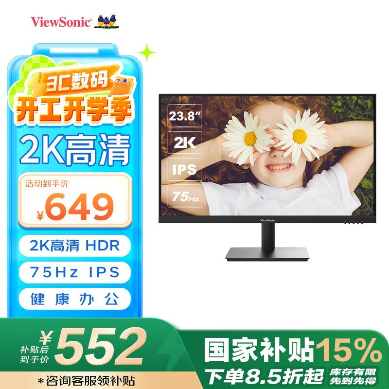 优派VA2462-HU-2显示器促销:23.8英寸IPS屏,到手仅639元
