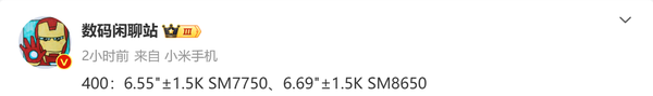 【CNMO科技消息】3月13日,数码闲聊站放出了荣耀400系列两款机型的核心配置:低配版机型搭载SM7750(高通骁龙7 Gen 4移动平台)和6.55英寸1.5K显示屏幕、高配机型搭载SM8650(高通骁龙8 Gen 3移动平台)和6.69英寸1.5K显示屏幕。