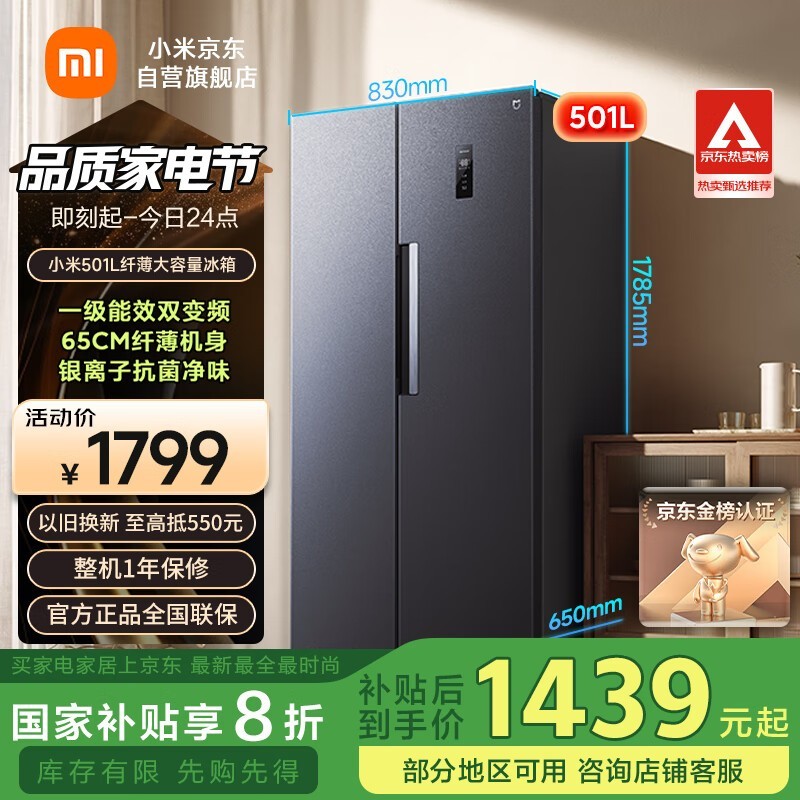 米家501L冰箱京东促销,补贴后1439元
