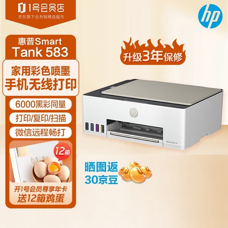 惠普Smart Tank 583:家庭办公神器,无线智能彩印一体机,949元起享受高清打印与便捷生活