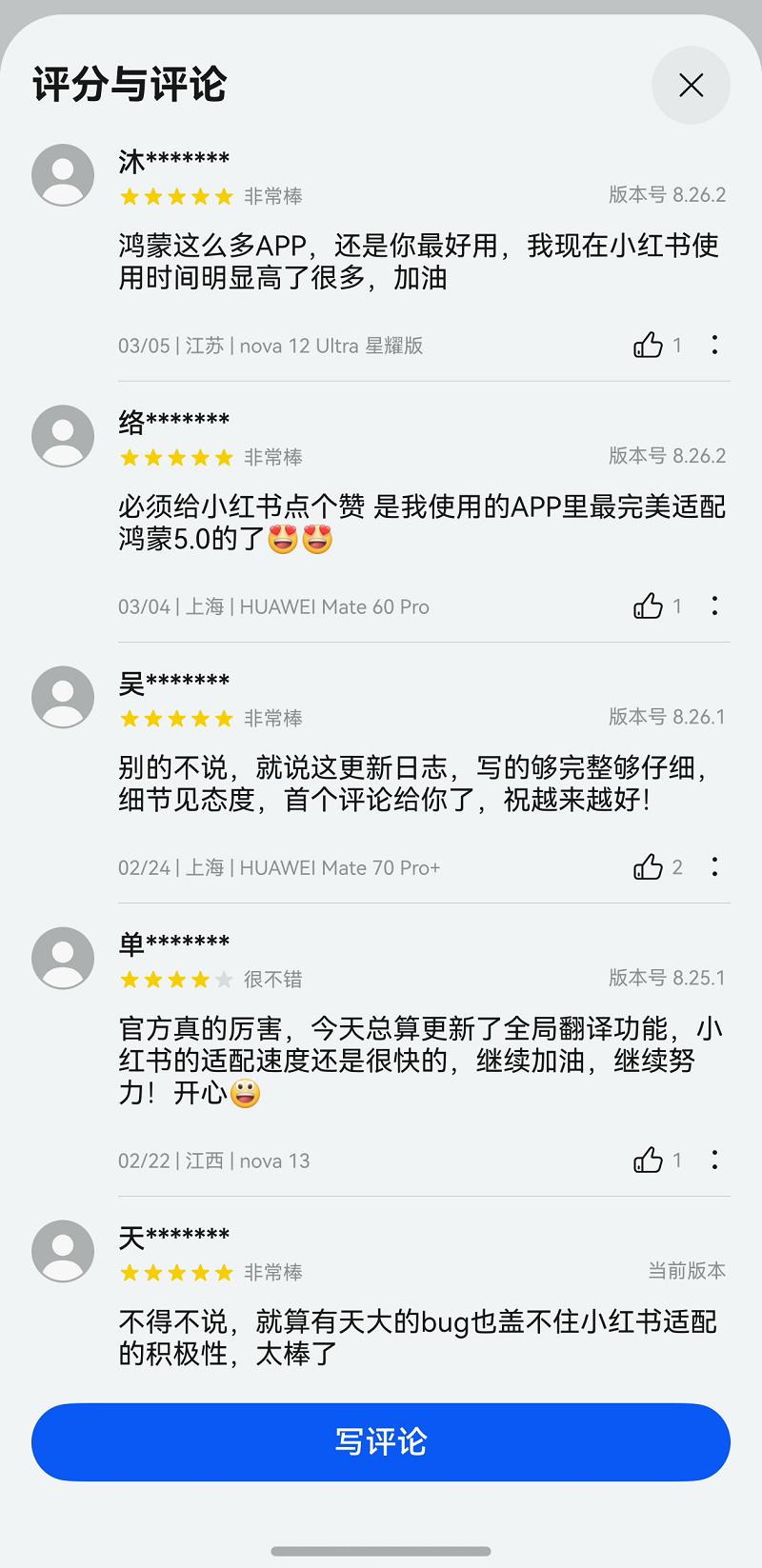 作为汇聚海量年轻用户的生活方式平台,小红书通过与原生鸿蒙深度融合,实现了体验的全面突破,无论是加好友,还是浏览和创作笔记的体验都已较之前版本有了提升,并且在数十次的迭代中,不断为用户奉上“大有不同”的社交体验,重新定义了“内容种草”。鸿蒙原生版小红书的快速开发、用心迭代、完美适配,正在“圈粉”越来越多的用户,目前安装量已达255万次,也是破百万下载量应用中评分最高的之一,可见用户的认可。