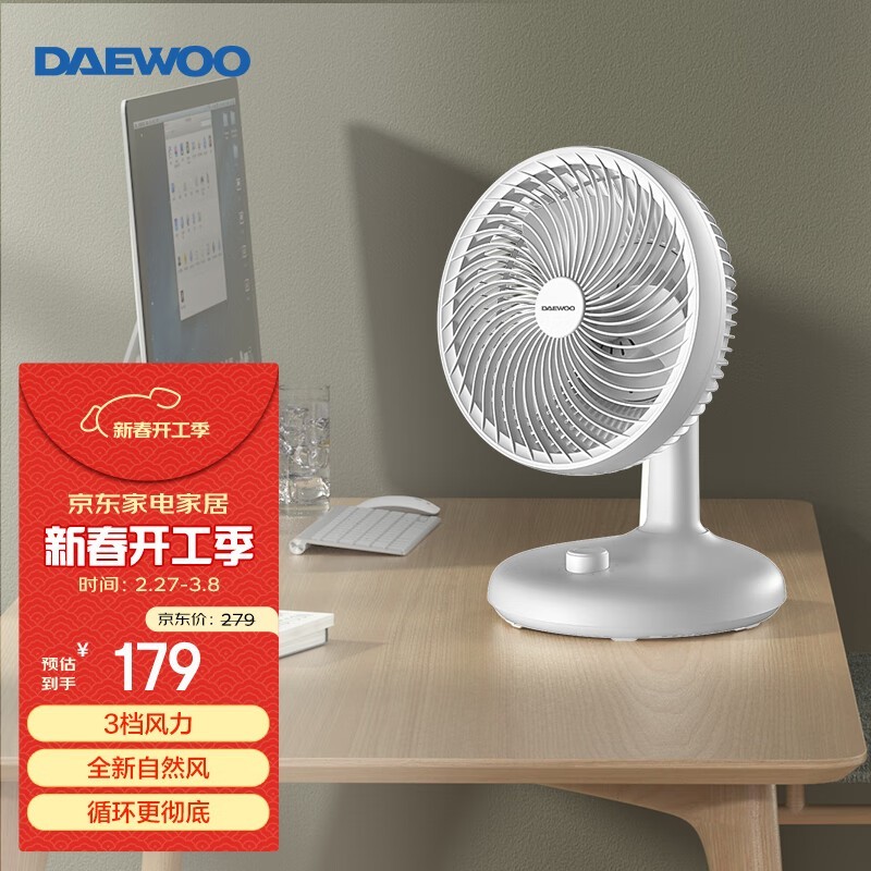 大宇空气循环扇C30白机械款家用便携桌面两用电风扇
