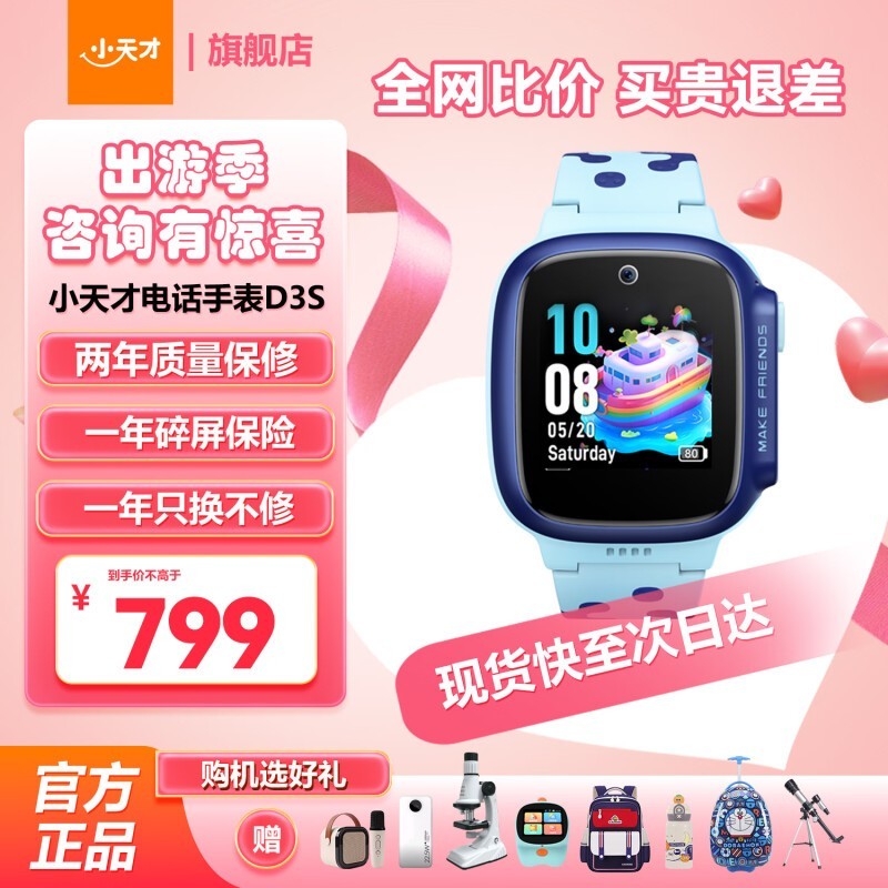 小天才儿童电话手表D3S晴山蓝 GPS定位防水设计