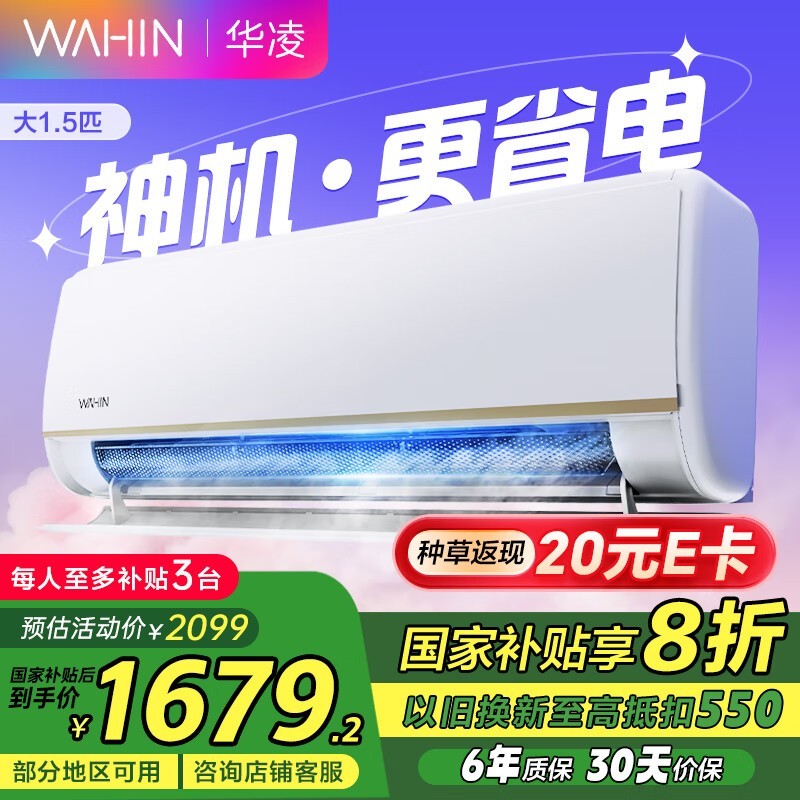 华凌1匹壁挂式空调新一级能效变频京东到手1552元