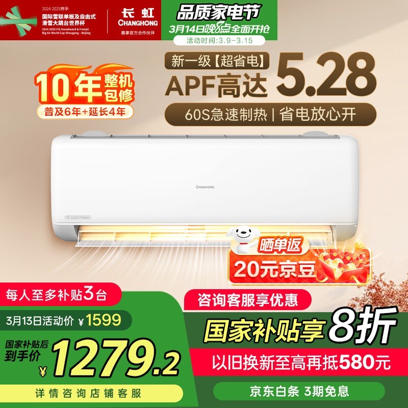 长虹1匹一级能效空调促销到手仅1190元