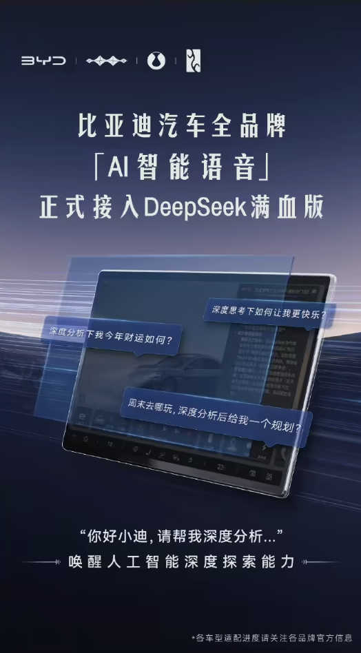 比亚迪表示,接入DeepSeek-R1大模型后,其车机系统将变得听得懂,会思考,精准答。