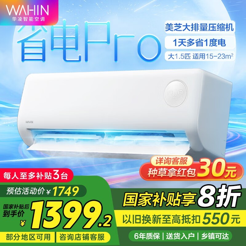 华凌1.5匹壁挂式空调新一级能效变频静音省电又环保