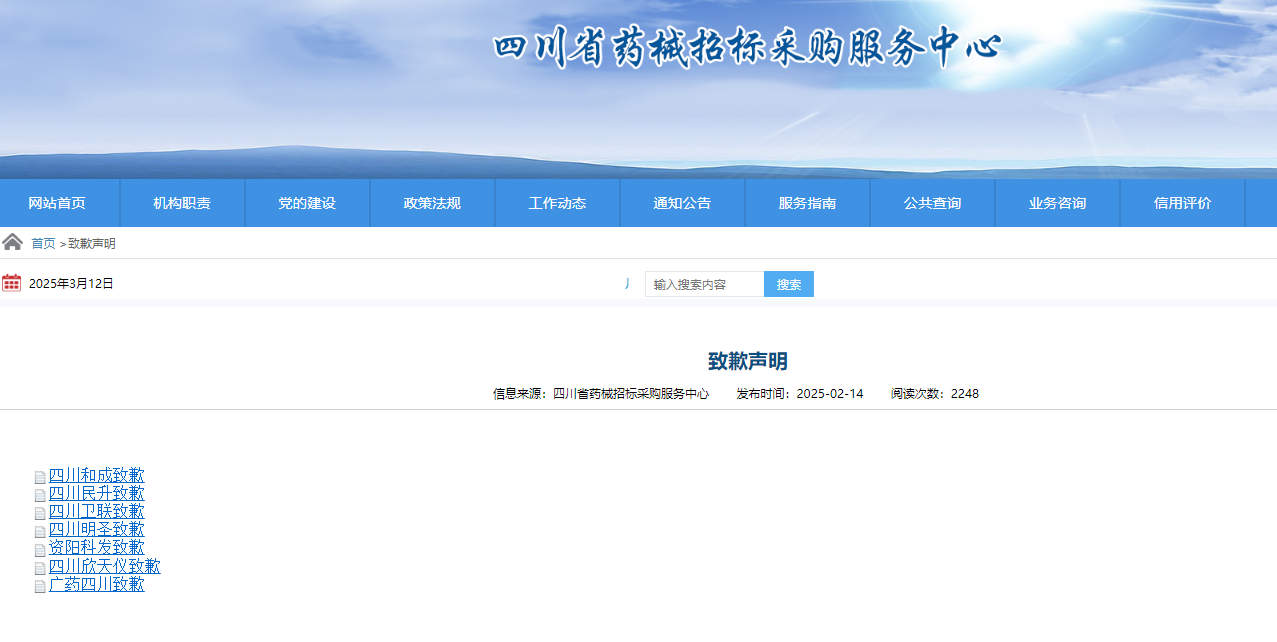近日,四川省药械招标采购服务中心发布了7家药企的致歉声明,所涉事项为销售过程中存在不合规行为。其中包括医药龙头广州白云山医药集团股份有限公司(简称“白云山”)旗下广药四川医药有限公司(简称“广药四川”)。