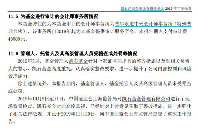 凯石基金还披露,2019年10月9日至11日,上海证监局对该公司进行了现场监督检查,公司对此高度重视,已经针对上述意见采取了整改措施,进一步强化了相关法律法规,并已于2019年11月20日,向上海证监局提交了整改工作报告。
