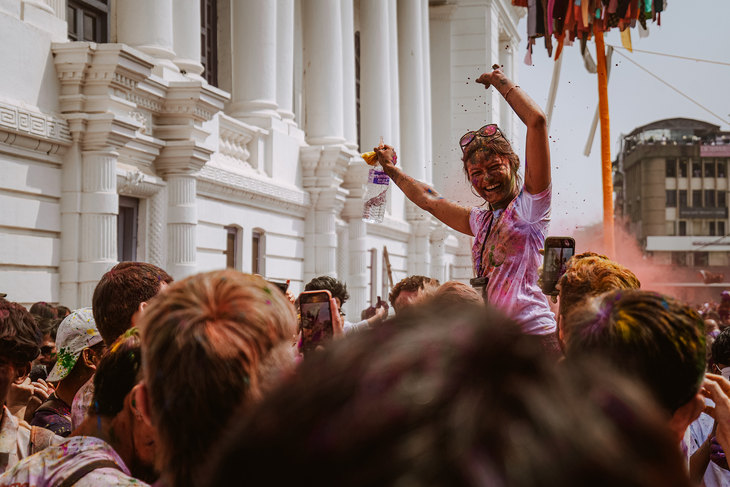 LUMIX S5M2拍摄,F5.6,1/500S,ISO 100在洒红节的狂欢中,人物的动作快速且多变,但LUMIX S5M2具备每秒30帧的高速连拍,可以捕捉到每个绚丽的瞬间与。而且在高速拍摄中,S5M2依然能够保持图像的清晰度,确保每一张照片的细节都鲜明可见。