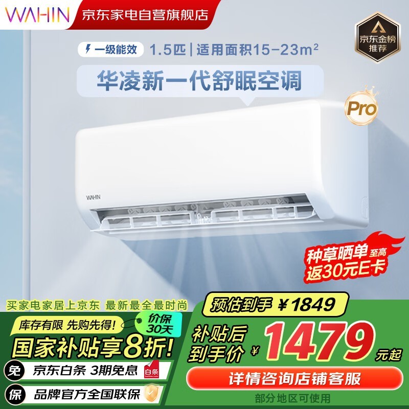 华凌1匹壁挂空调,多种优惠后1369元
