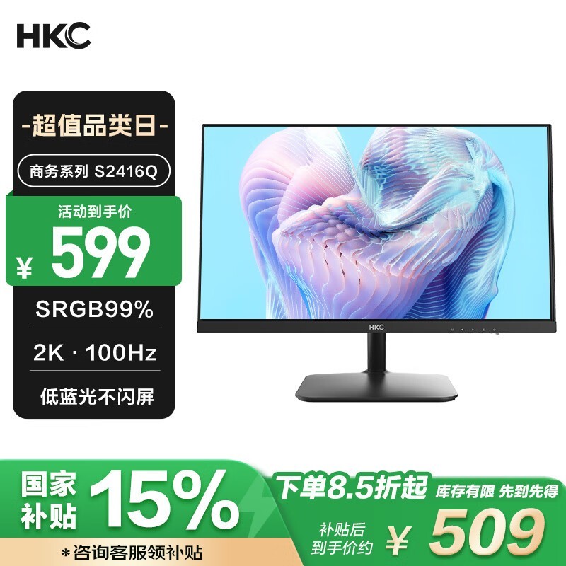 HKC S2416Q显示器促销到手价仅506元