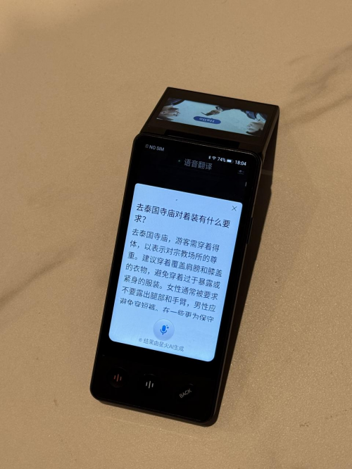 在东南亚驻外时,最怕生病买药看不懂说明书,讯飞双屏翻译机一拍,剂量禁忌清清楚楚;去办签证填表,对着外语文件拍一下,立刻知道该填啥;甚至路边摊菜单都能翻译出“炸昆虫套餐”;要出门逛逛,路牌提示啥的也能一拍即译,去哪儿不在话下,通过这台智能翻译机的星火问答助手,当地的风俗习惯一目了然,也能为自己量身定制个休闲旅游路线在当地小逛一下。