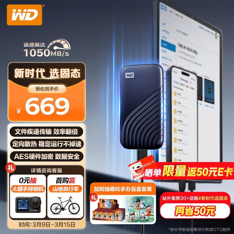 西部数据My Passport随行SSD 1TB宇宙蓝版促销信息