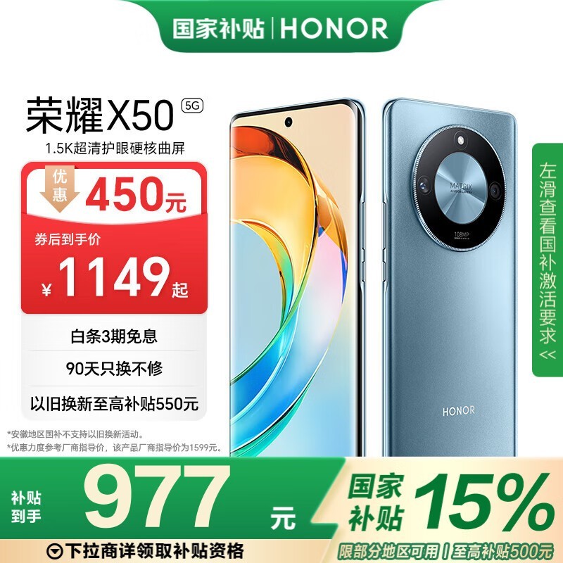 荣耀X50 5G手机勃朗蓝8GB+256GB大存储超值优惠