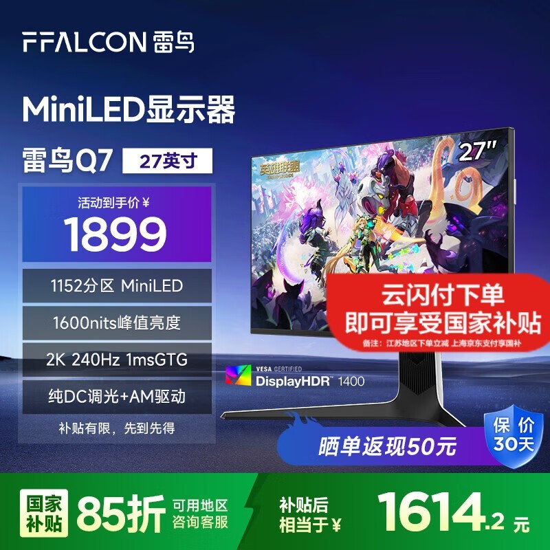 雷鸟Q7 27英寸显示器京东优惠价1536元