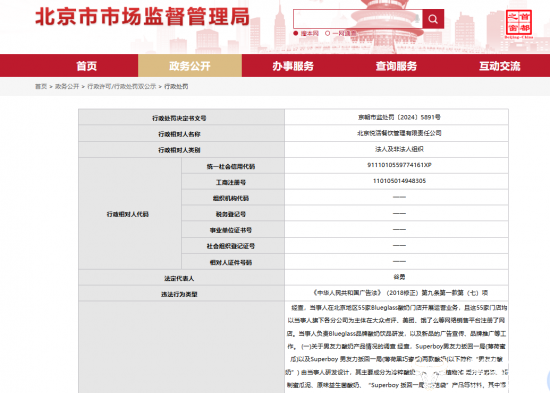 据悉,在去年10月23日,Blueglass酸奶的主体运营方,也就是北京悦活餐饮管理有限责任公司被北京市朝阳区市场监督管理局罚款40万元,原因系广告内容违法。